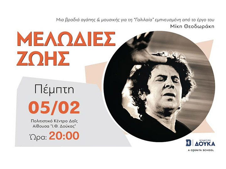 Με στόχο την στήριξη της ΓΑΛΙΛΑΙΑΣ τα Εκπαιδευτήρια Δούκα διοργανώνουν μια ξεχωριστή συναυλία με έργα του κορυφαίου Έλληνα συνθέτη Μίκη Θεοδωράκη, την Πέμπτη 5 Φεβρουαρίου 2026, στις 20:00, στην Αίθουσα «Ι.Φ. Δούκας» του Πολιτιστικού Κέντρου Δαΐς.