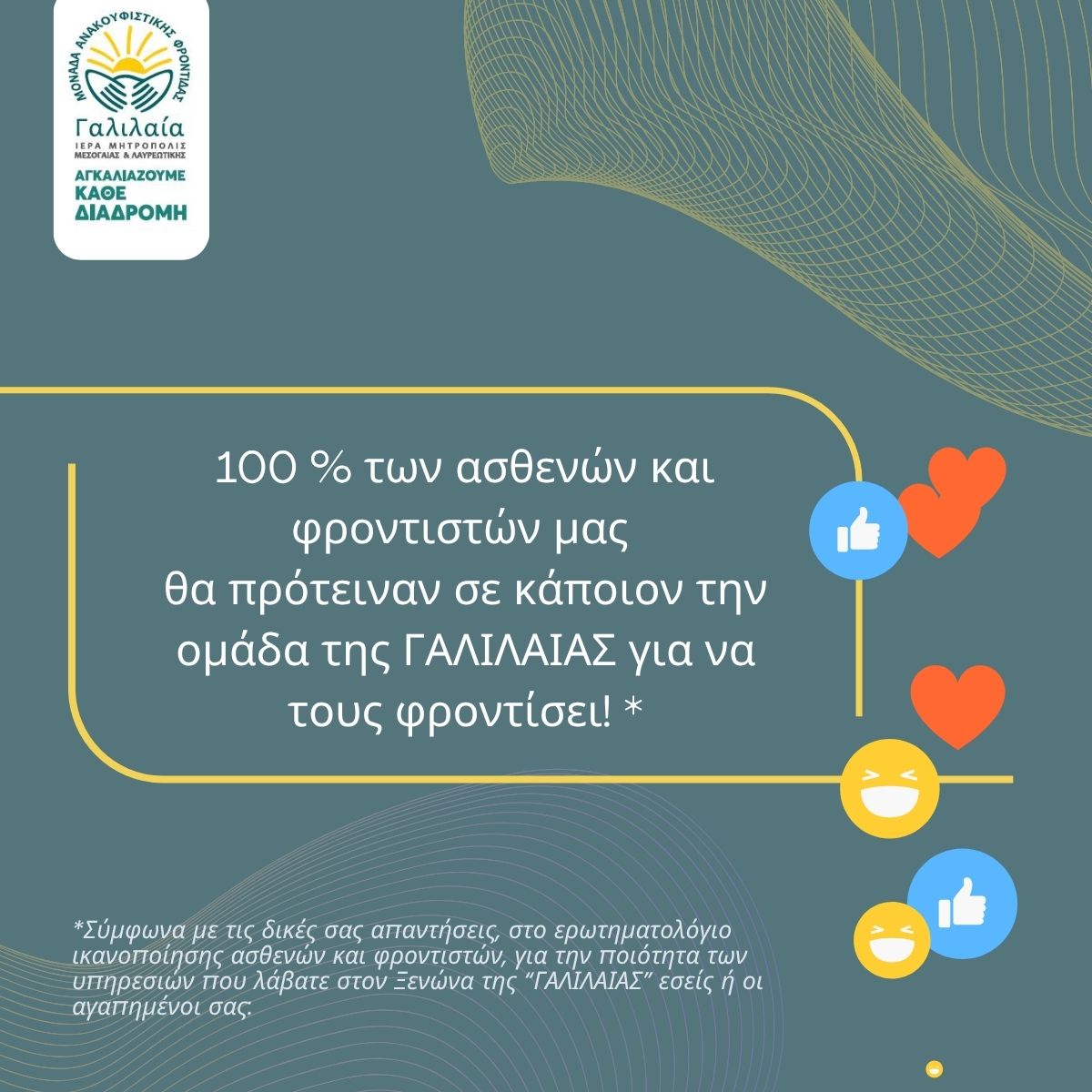 Αισθάνομαι πραγματικά ευλογημένη που είχα την ευκαιρία να φιλοξενηθω στη Γαλιλαία, σε ένα πανέμορφο σπίτι, στην αγκαλιά μιας οικογένειας που συγκροτούσε όλο το προσωπικό, από τους εξαιρετικούς γιατρούς και νοσηλευτές, έως όλους τους υπόλοιπους φροντιστές. Σας είμαι βαθύτατα ευγνώμων για όλη τη στήριξη που μου προσφερατε!
