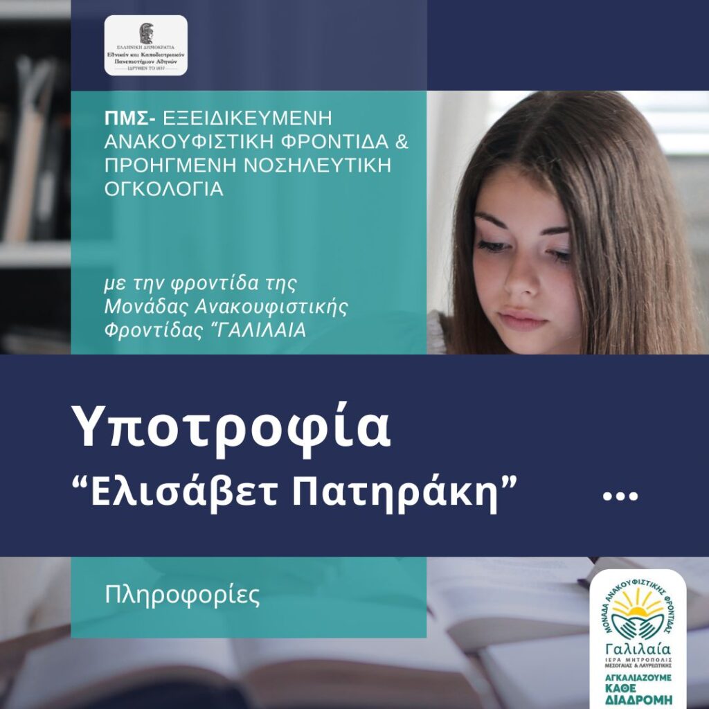 Προκήρυξη Υποτροφίας «ΕΛΙΣΑΒΕΤ ΠΑΤΗΡΑΚΗ», της Μονάδας Ανακουφιστικής Φροντίδας «ΓΑΛΙΛΑΙΑ»