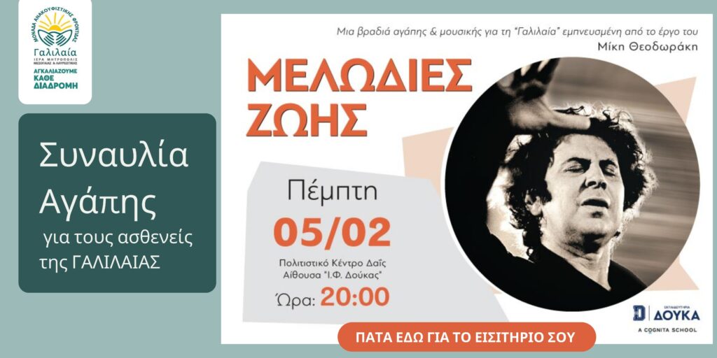 Με στόχο την στήριξη της ΓΑΛΙΛΑΙΑΣ τα Εκπαιδευτήρια Δούκα διοργανώνουν μια ξεχωριστή συναυλία με έργα του κορυφαίου Έλληνα συνθέτη Μίκη Θεοδωράκη, την Πέμπτη 5 Φεβρουαρίου 2026, στις 20:00, στην Αίθουσα «Ι.Φ. Δούκας» του Πολιτιστικού Κέντρου Δαΐς.