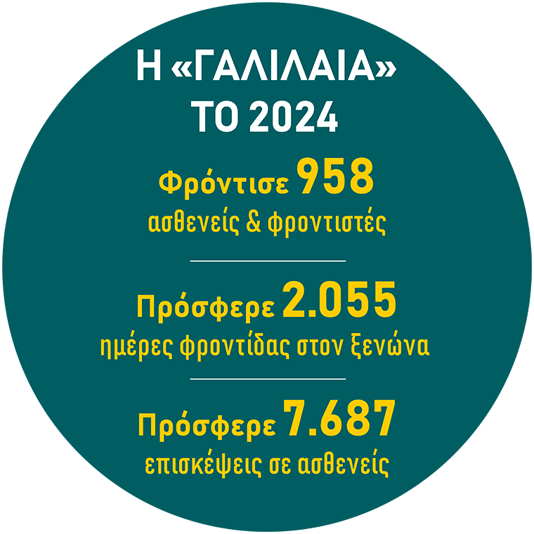 Η «ΓΑΛΙΛΑΙΑ» αγκαλιάζει τη ζωή σε κάθε στάδιό της προάγοντας την αξιοπρέπεια και τον σεβασμό. Προσπαθεί να εξασφαλίσει στο μέτρο του δυνατού την αυτονομία του ασθενούς και τη μικρότερη δυνατή εξάρτηση από τους φροντιστές, ώστε να είναι λειτουργικός και να συμμετέχει ενεργά σε όσα αγαπά και επιθυμεί.